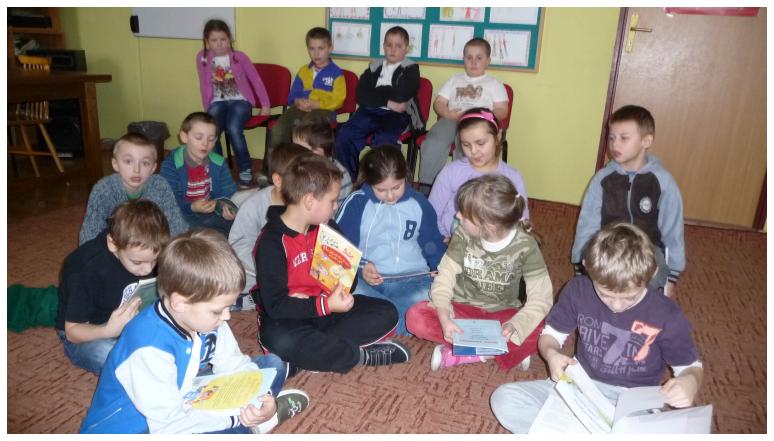 Lekcja biblioteczna w klasie pierwszej