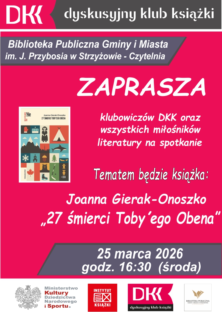 W dniu 23.II.2012r. o godz. 1600, miało miejsce spotkanie organizacyjne dla miłośników literatury. Celem spotkania było utworzenie przy Bibliotece Publicznej Gminy i Miasta w Strzyżowie Dyskusyjnego Klubu Książki.